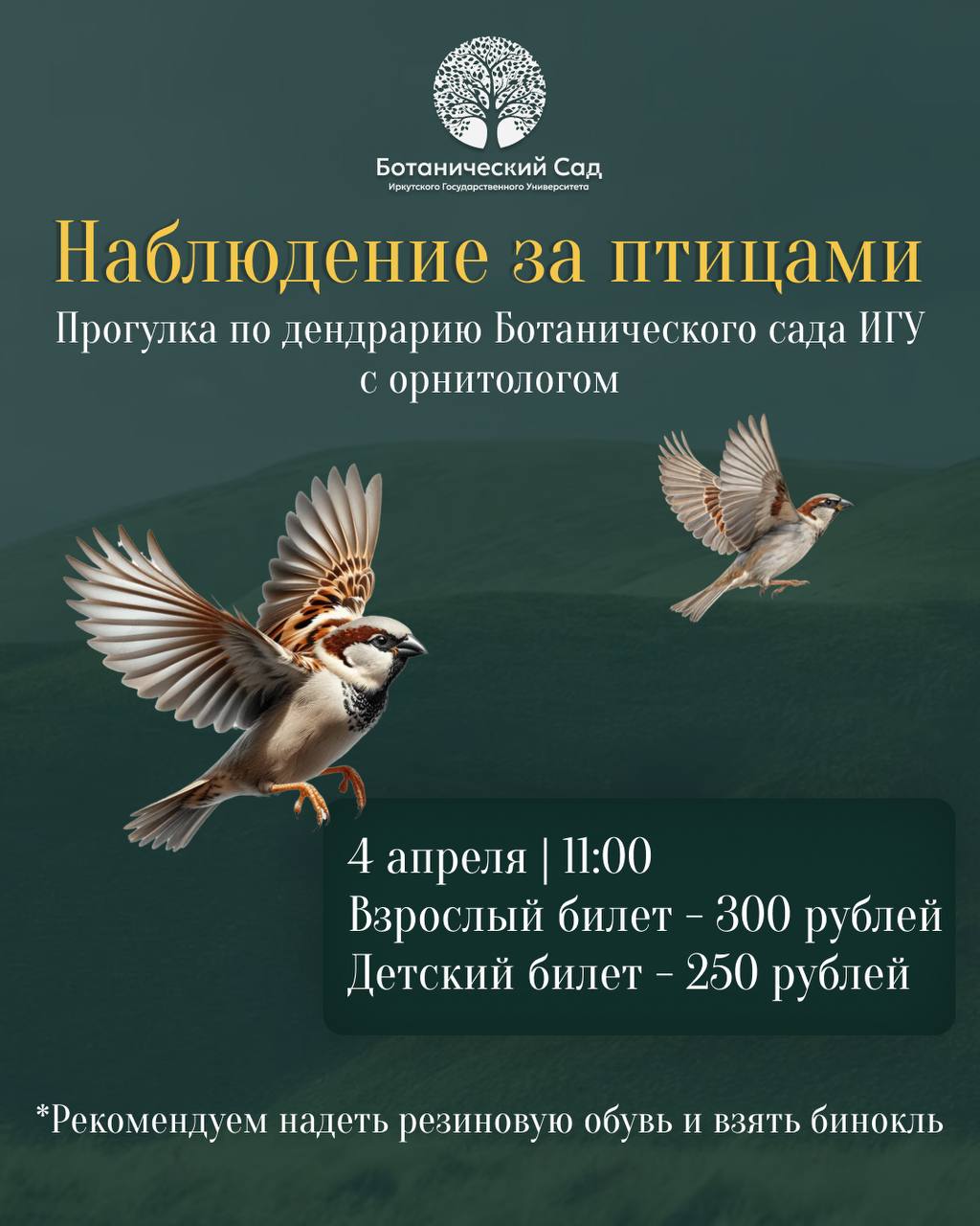 Наблюдение за птицами в Ботаническом саду ИГУ (0+)