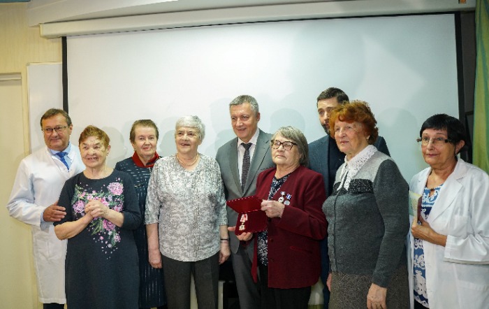 Среди тех, кто принимал высокую награду, – заслуженные врачи РФ Нина Евгеньевна Копылова, Галина Евгеньевна Рудых, ветераны труда Александра Иннокентьевна Монакова, Людмила Яковлевна Ерыпалова, Людмила Моисеевна Сметанникова, Ольга Михайловна Горюнова.