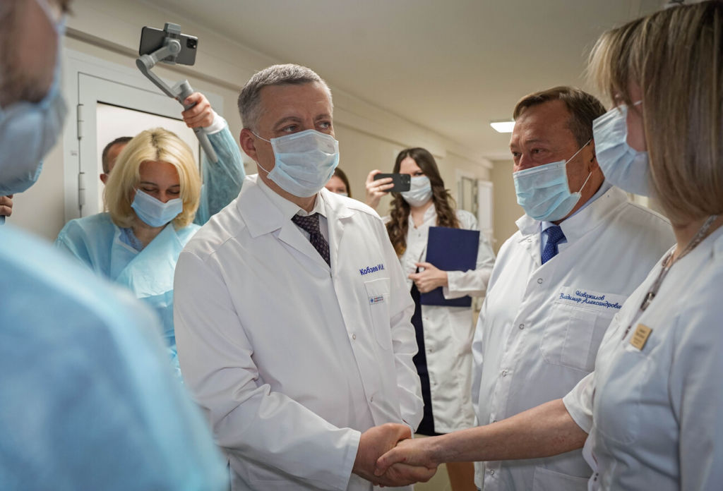 Визит главы региона в лечебное учреждение начался непосредственно с осмотра лечебного блока, который был закрыт в марте прошлого года на реконструкцию. Обновленное подразделение включает палату интенсивной терапии на 5 коек и соматический блок на 45 коек, и уже принимает маленьких пациентов.