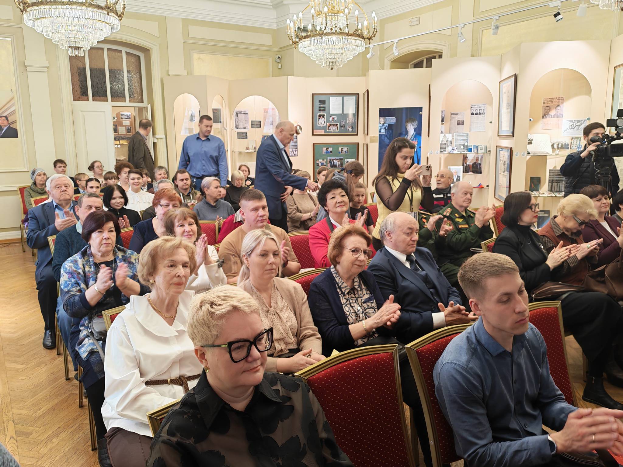 Юрий Алексеевич, вероятно, знал, что на съезде присутствует его первая учительница, потому что сразу нашёл её ряд и присел рядом. Первым делом он поинтересовался, каким образом Нина Васильевна оказалась в далёкой Сибири. Когда в Георгиевском зале объявили, что будет коллективное фото, наверное, все мечтали оказаться рядом с первым космонавтом, но Гагарин попросил, чтобы рядом с ним посадили его первую учительницу. Именно этот снимок среди прочих реликвий демонстрируется на открывшейся выставке.