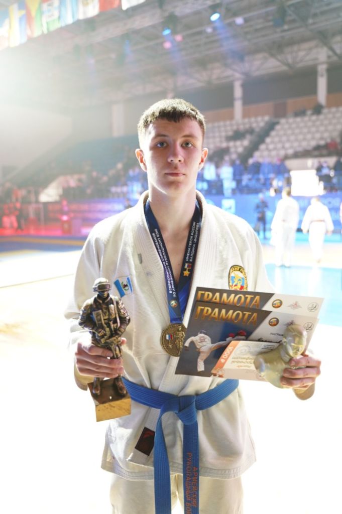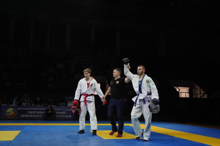 Например, у Тихона Карпецова из Иркутска, воспитанника президента Федерации армейского рукопашного боя Иркутской области Артема Мелкоступова – золото в весовой категории 70 кг среди юниоров 16–17 лет. Спортсмен провел три боя.