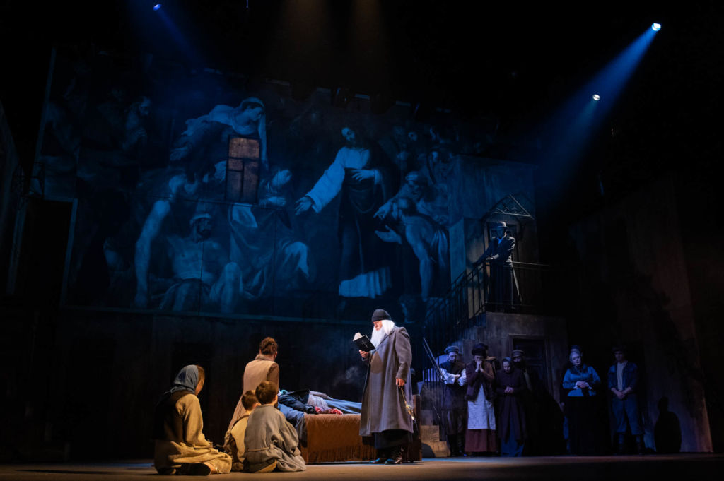 Режиссеру удалось очень точно распределить роли. В простановке 39 действующих лиц, среди которых практически нет второстепенных персонажей, каждый герой вносит свою лепту в полифоническое полотно спектакля.