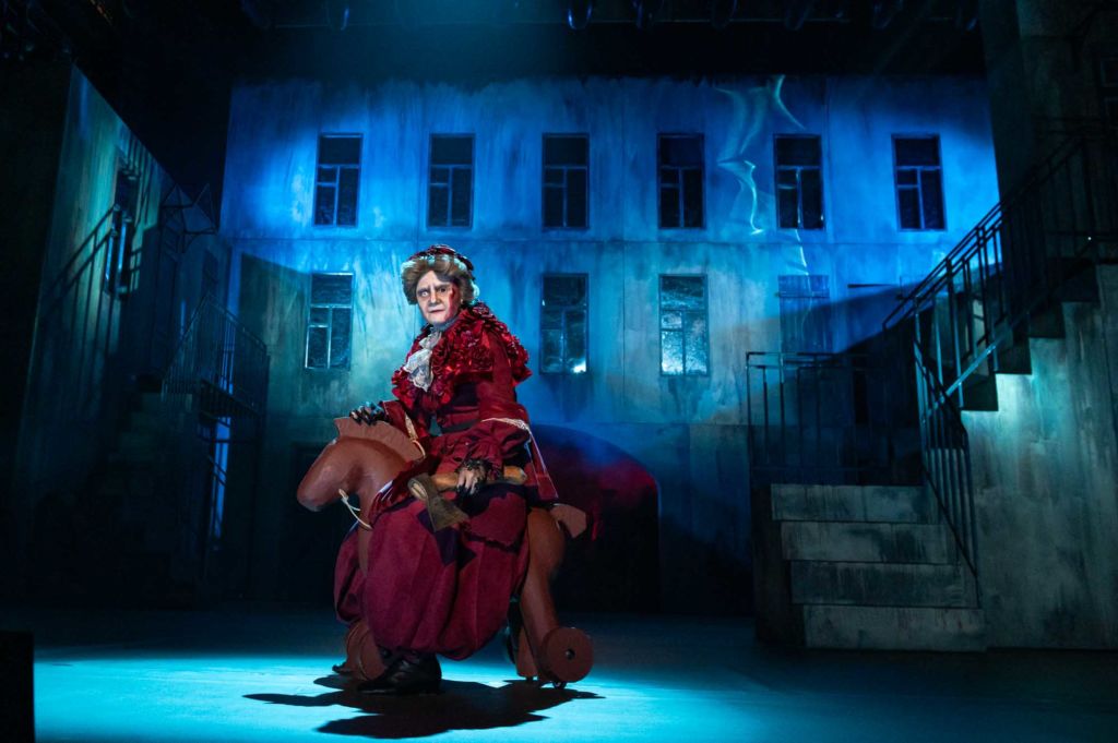 – У нас получился спектакль в спектакле, – отметила Екатерина Финк. – Есть основные герои и гротескные персонажи, придуманные режиссером. Мы как бы часть самого Раскольников, его потаенные страшные мысли, внутренние демоны. Мы провоцируем и мотивируем его на зло.